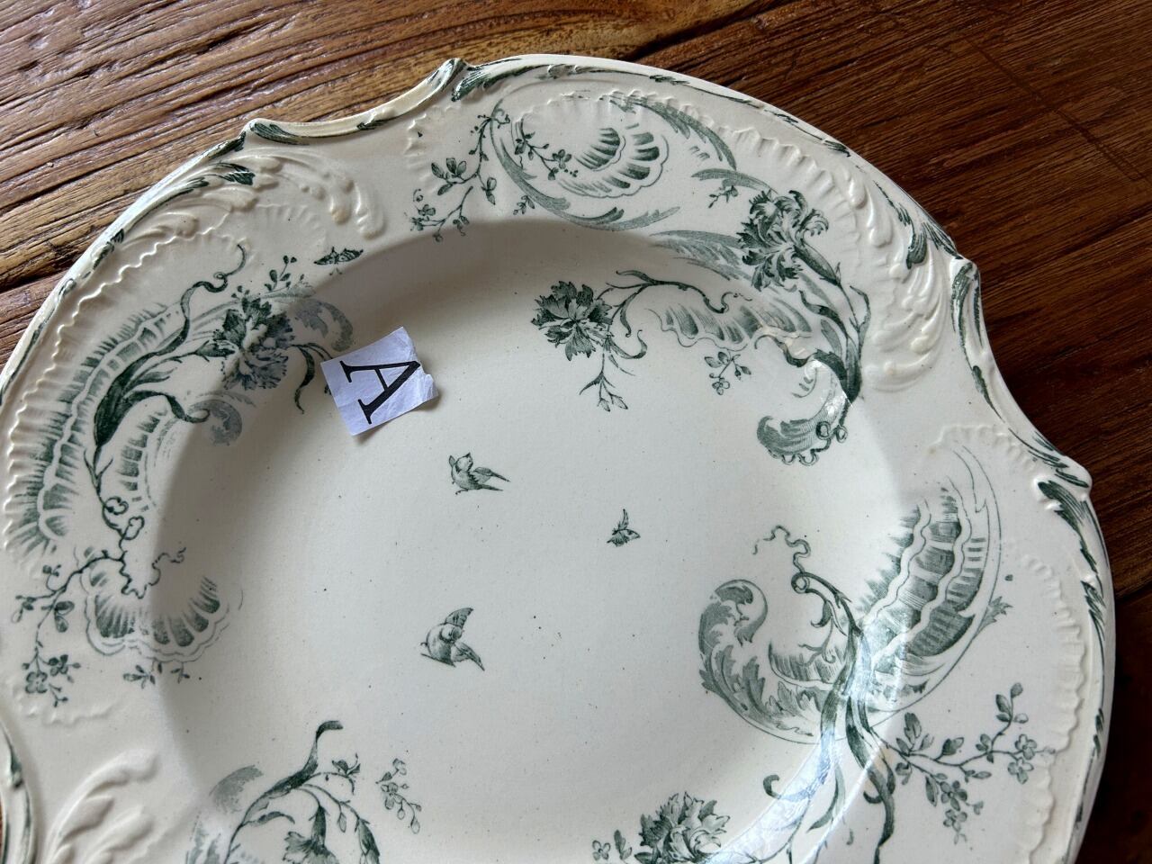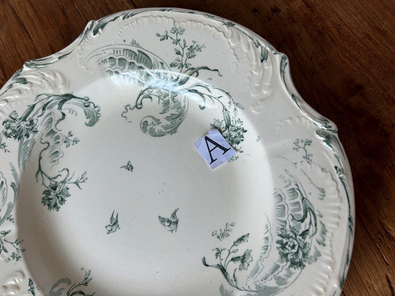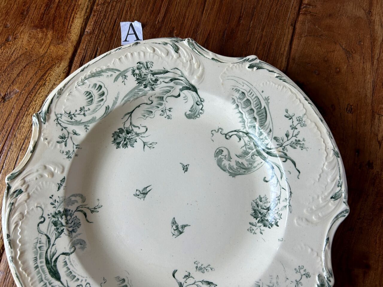 フランス、ジアン窯のモスグリーンの絵柄が美しいプレートをご紹介します。クリーム色を基調としたお皿にレリーフが施されています。お皿の中央に描かれている解き放たれた鳥が美しく、また可愛いらしいポイントでもあります。こちらのお皿は1875年頃に作られたロカイユスタイルのお品です。上品で高貴なフォルムが特徴です。