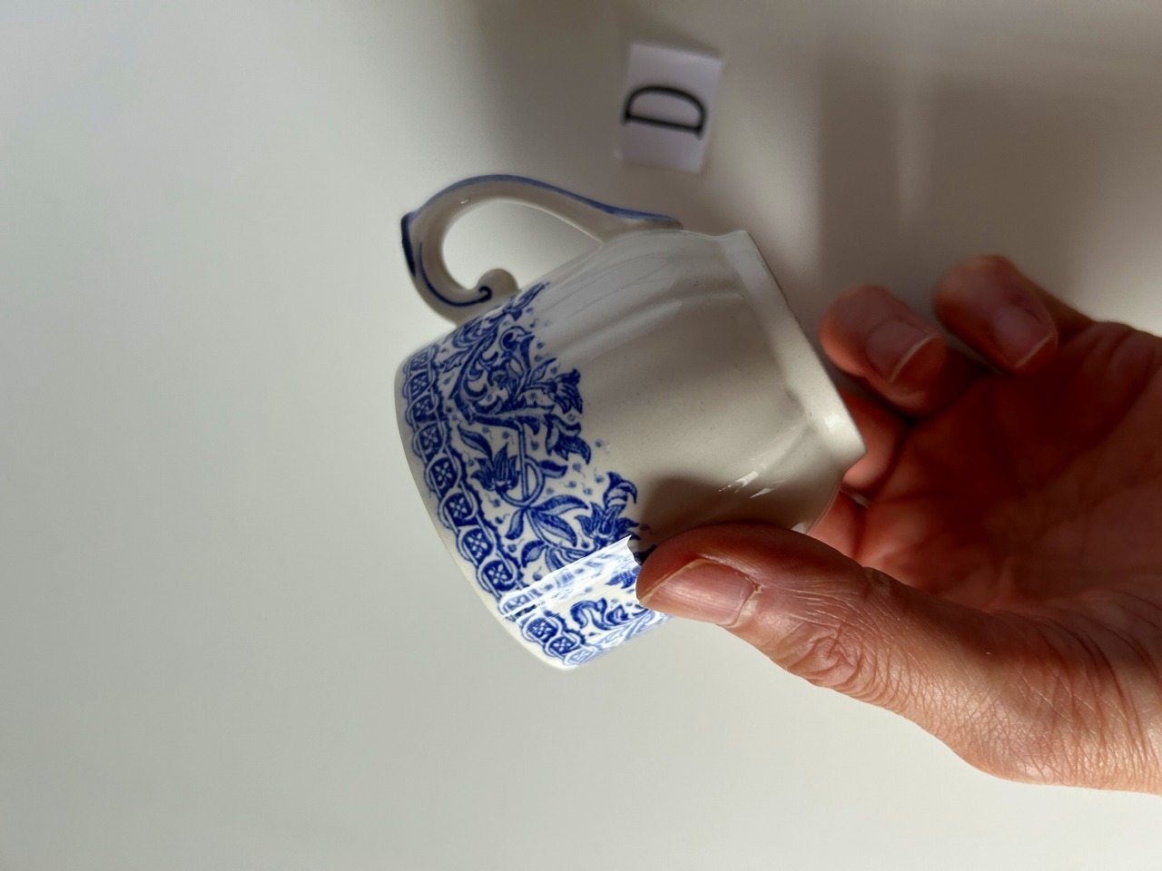 可愛らしいブルーの絵柄に、艶やかなホワイトの器。お家の食器棚にあったら嬉しくなってしまうようなカップです。