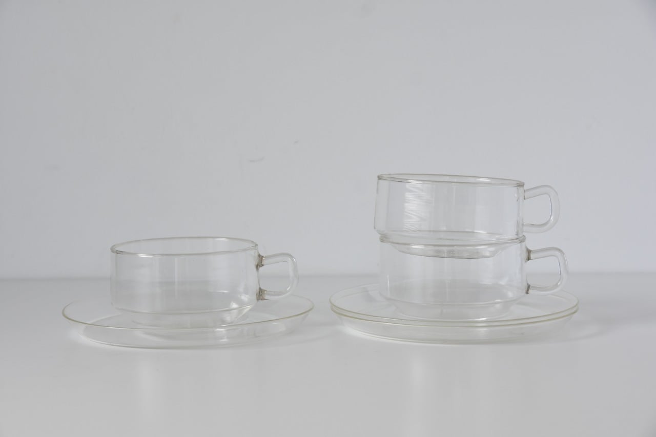 旧東ドイツ時代のガラスメーカーSaale Glasからシンプルな耐熱カップアンドソーサーをご紹介します。