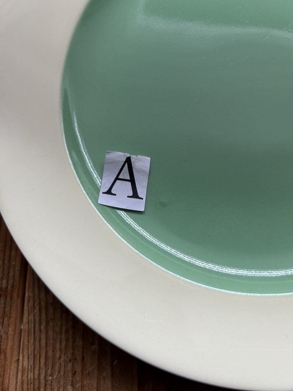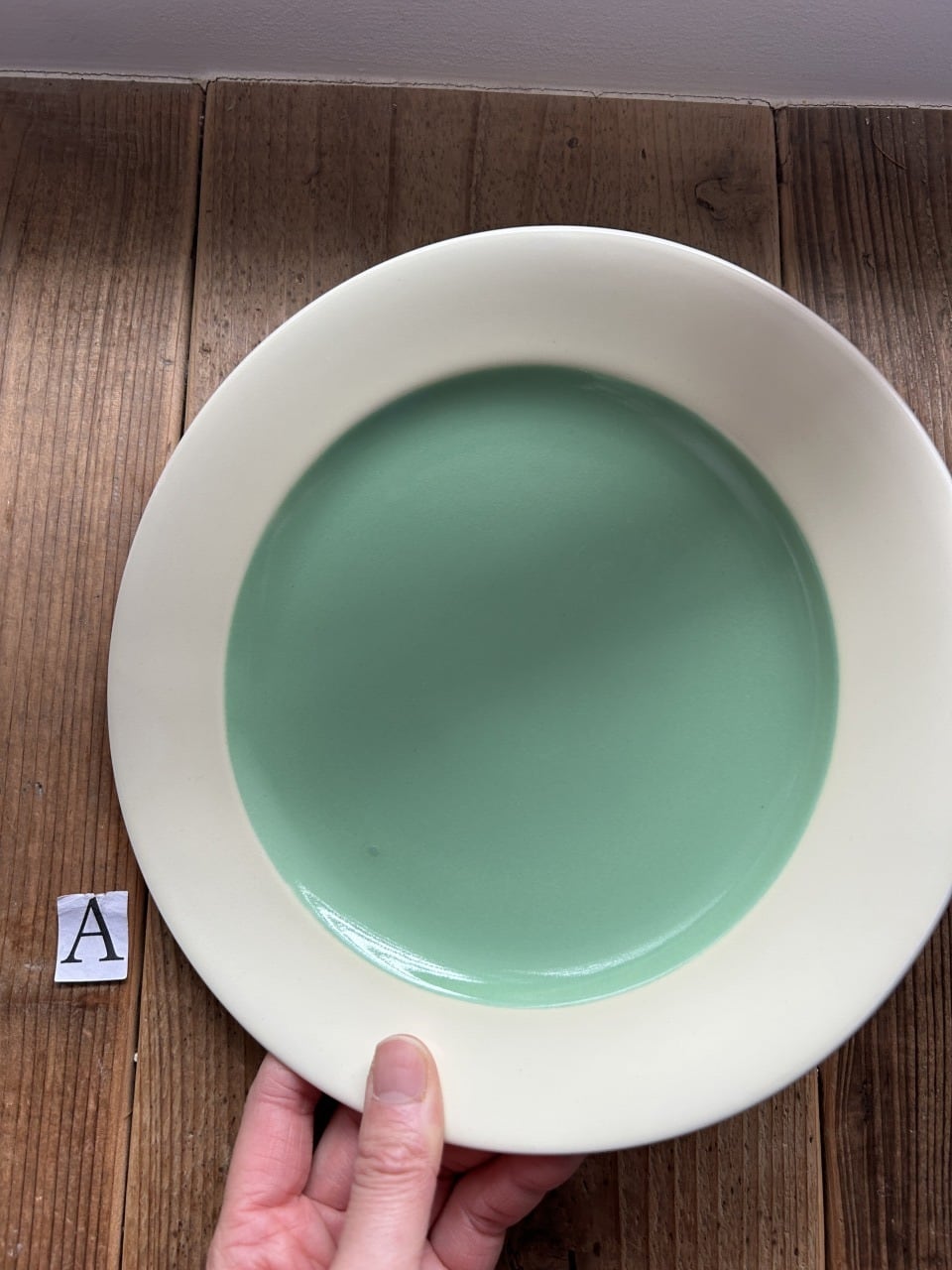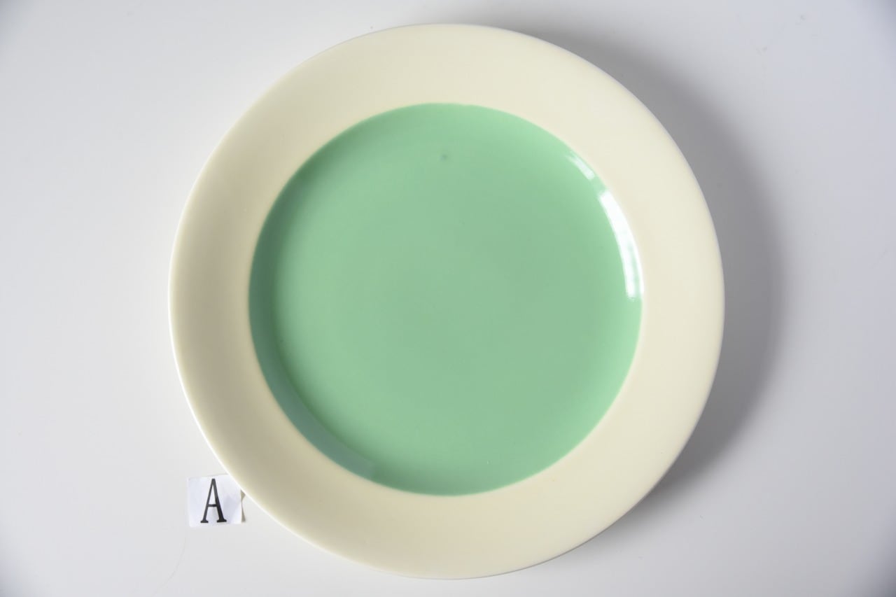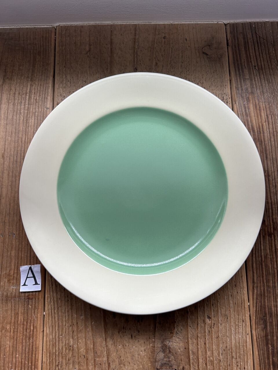 人気のサランから、クリーンで美しいペールグリーンのビンテージディナープレートをご提案します。