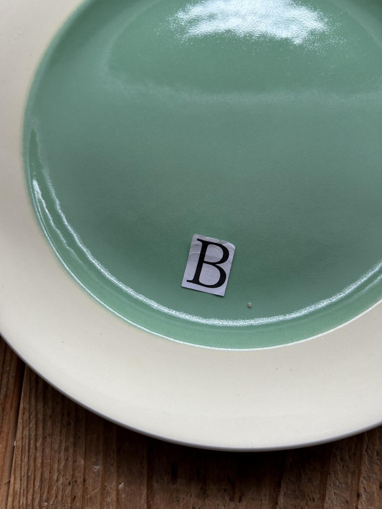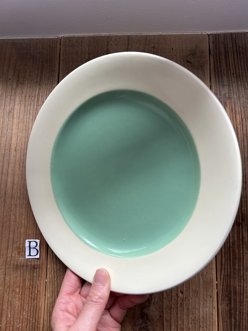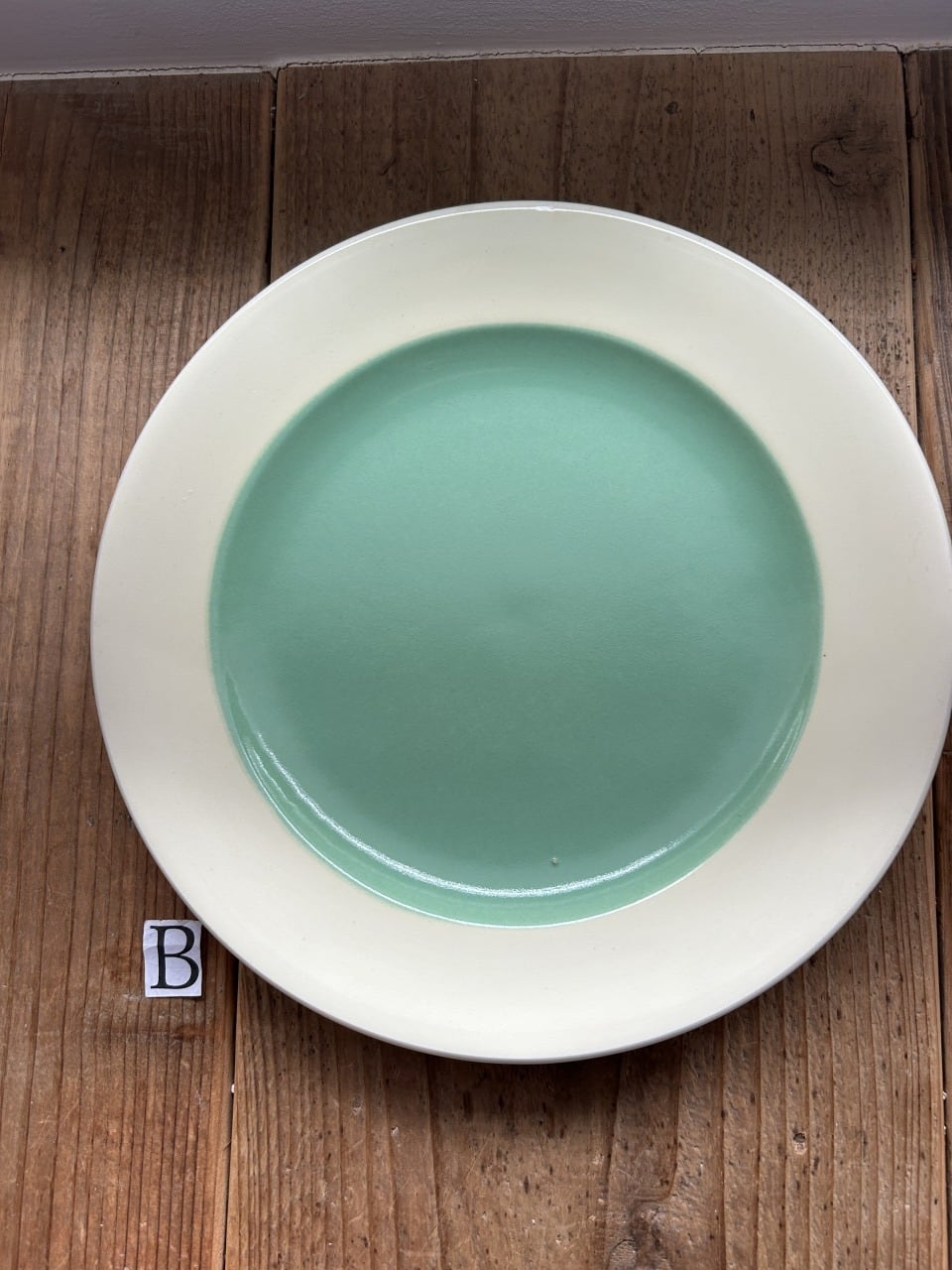人気のサランから、クリーンで美しいペールグリーンのビンテージディナープレートをご提案します。