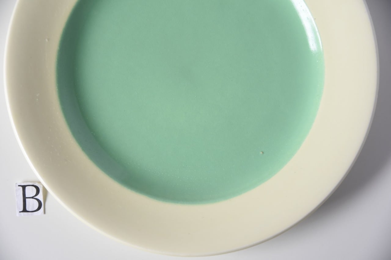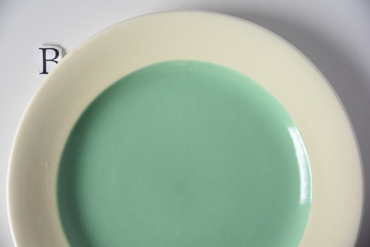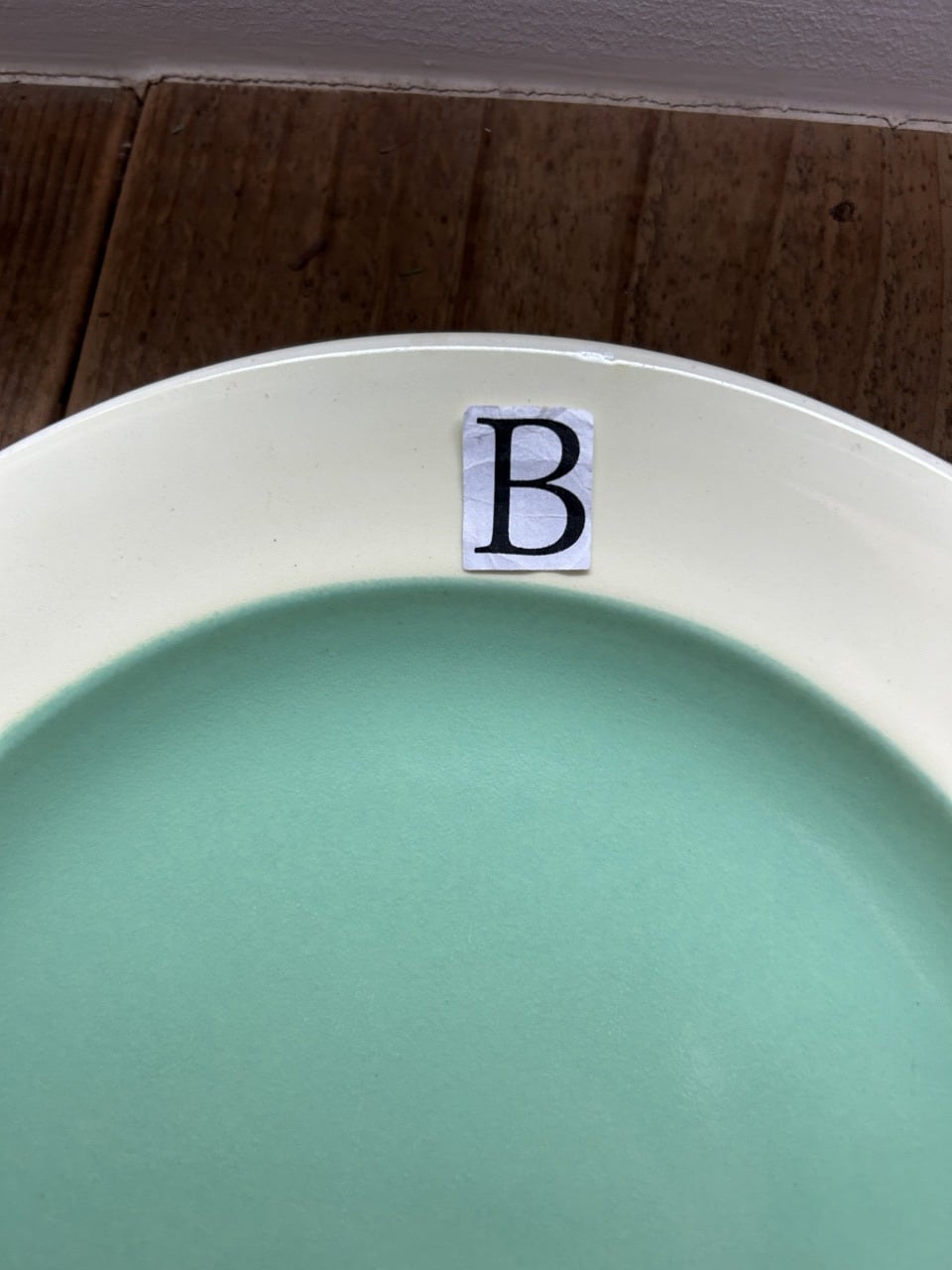 人気のサランから、クリーンで美しいペールグリーンのビンテージディナープレートをご提案します。