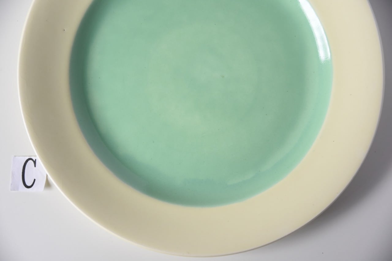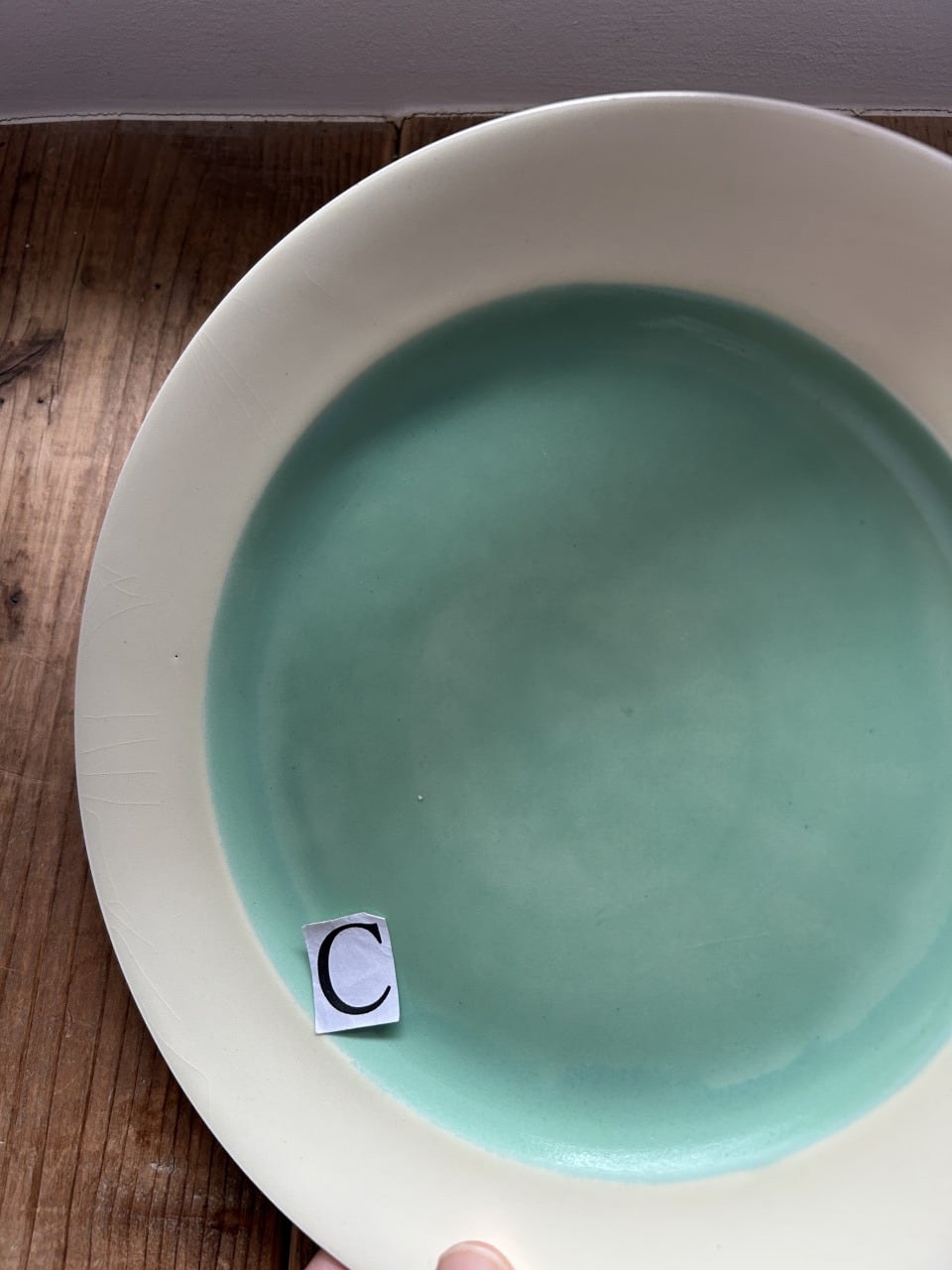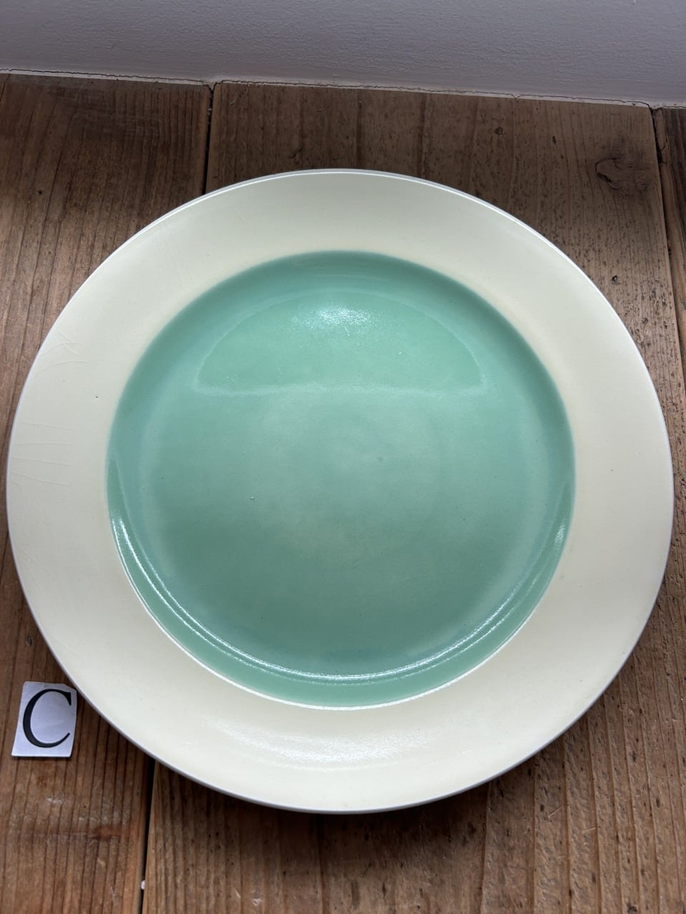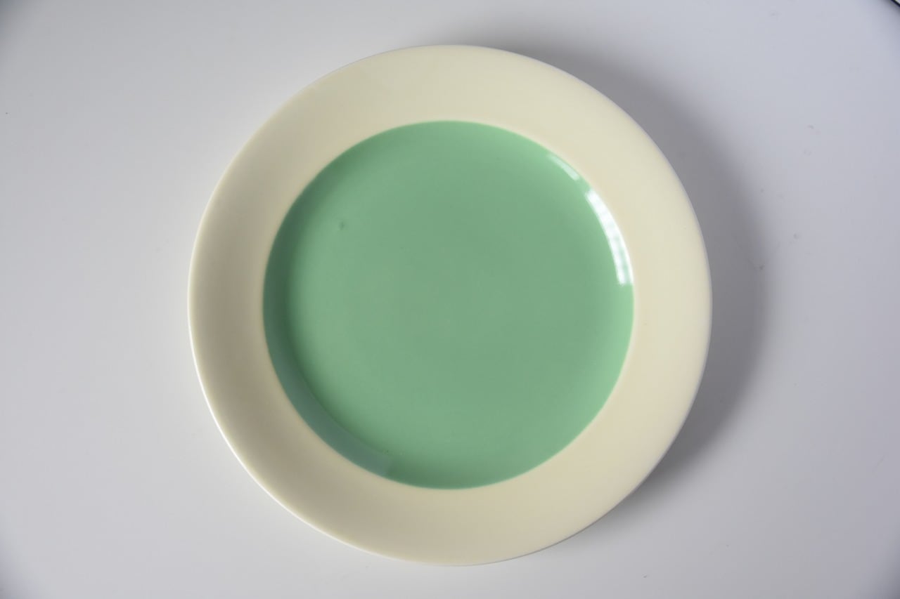 人気のサランから、クリーンで美しいペールグリーンのビンテージディナープレートをご提案します。