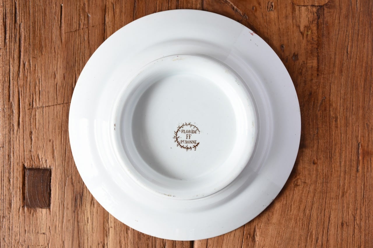 今回紹介するお皿はFLORIDEというシリーズで、鳥が繊細に描かれていて、縁取りはお花で囲まれています。一枚一枚少しずつ絵柄が違うのが特徴です。