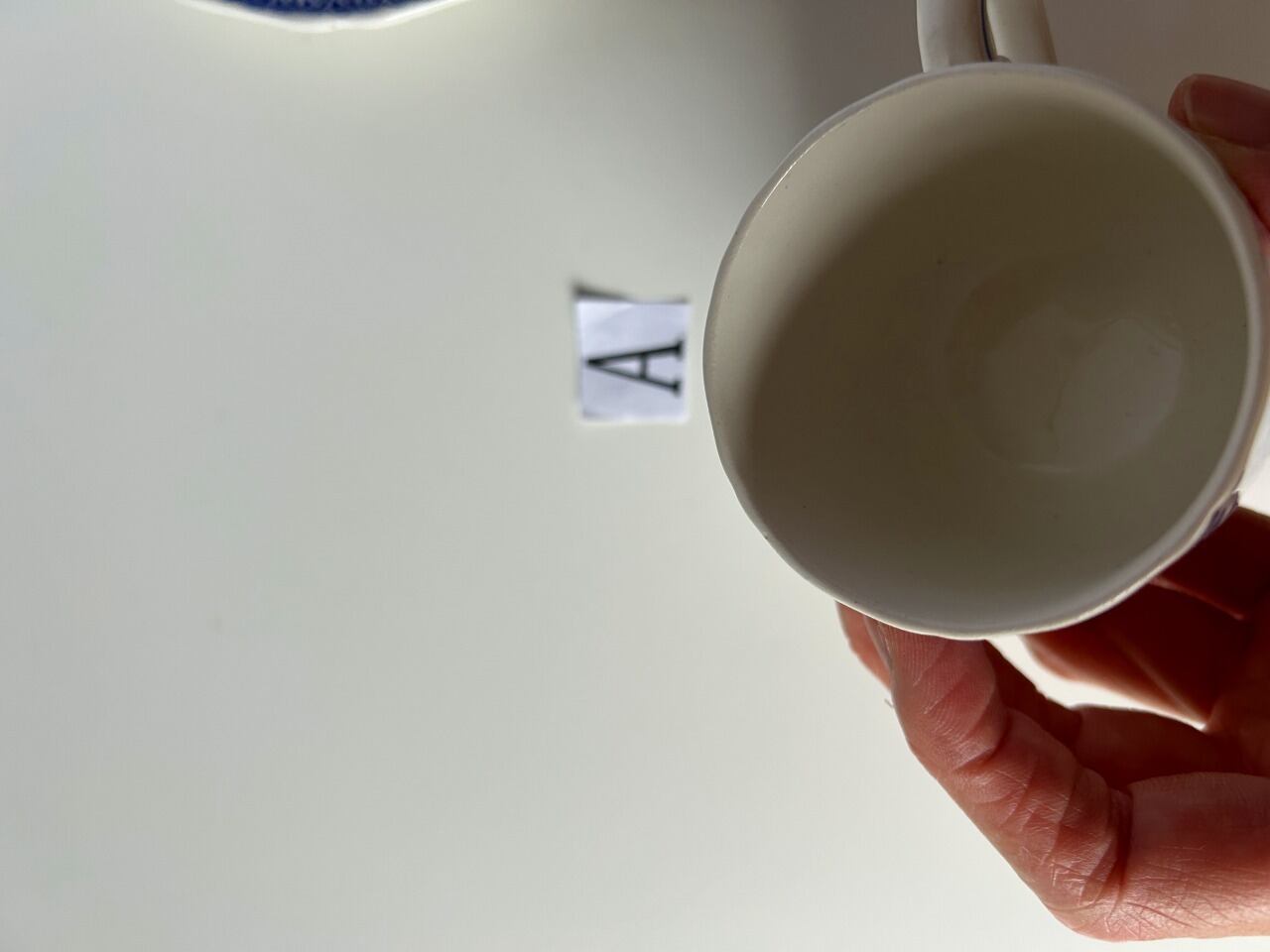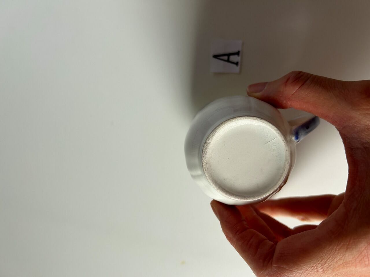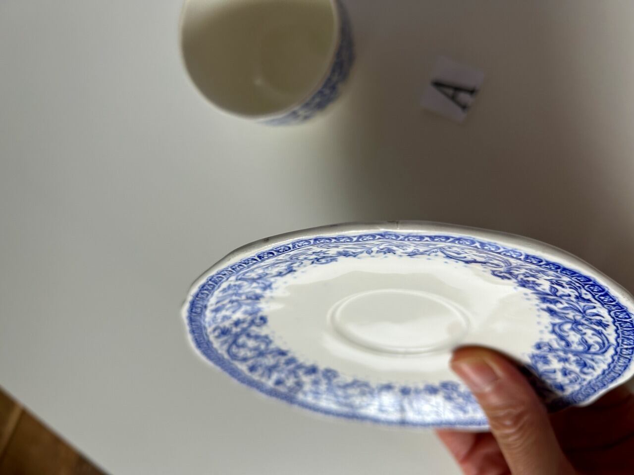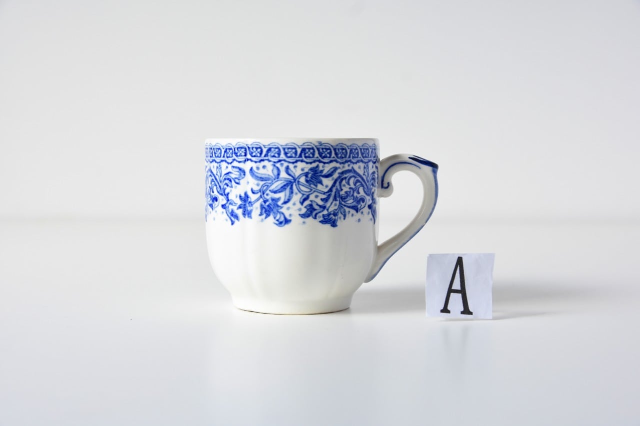 可愛らしいブルーの絵柄に、艶やかなホワイトの器。お家の食器棚にあったら嬉しくなってしまうようなカップです。
